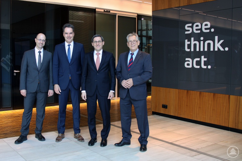 Der neue Hauptgeschäftsführer der IHK Niederbayern, Alexander Schreiner (2.v.l.) informierte sich gemeinsam mit seinem Stellvertreter Martin Frank (rechts) bei ZF-Standort- und Divisionsleiter Dr. Klaus Geißdörfer (2.v.r.) und Klaus Jaschke, Leiter Finanzen, Controlling, IT und Prozessmanagement bei ZF, über das größte Unternehmen Passaus.