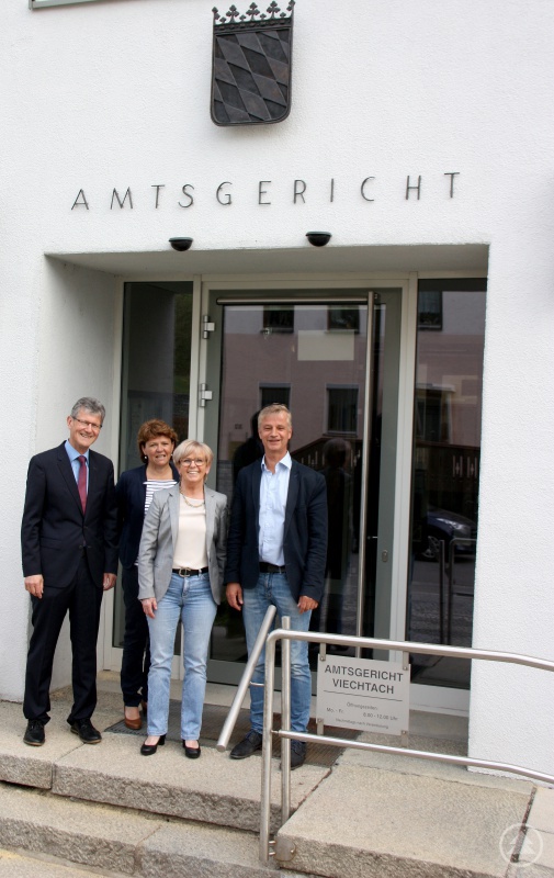 Landrätin Röhrl (3.v.li.) mit (v.li.) Amtsgerichtsdirektor Johann Zankl, Geschäftsleiterin Sigrid Weiß und dem stellvertretenden Amtsgerichtsleiter Markus Werrlein.