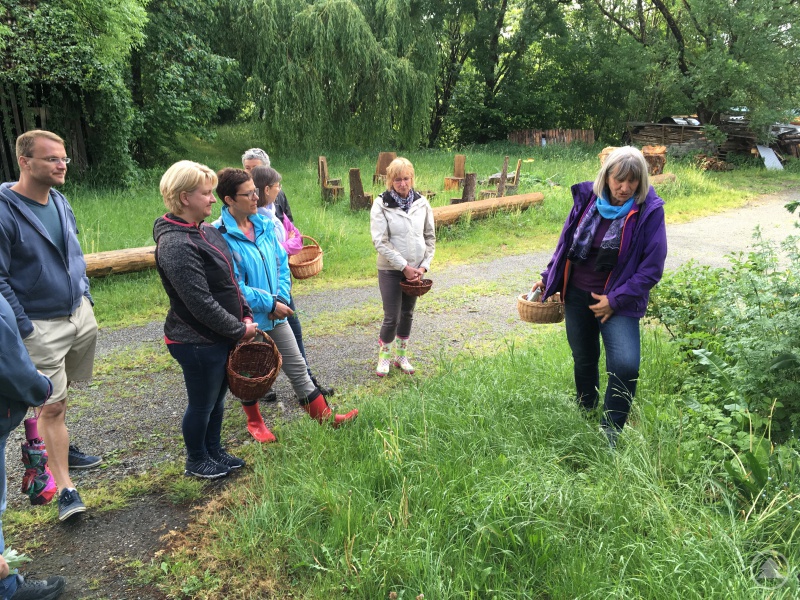 Beim Pflücken der Pflanzen riet die Referentin die Kräuter und Pflanzen nur einzeln und mit der Hand zu pflücken, damit man auch wirklich sehen kann was man pflückt.