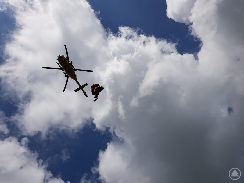 Anschließend wurde sie mittels Rettungsdreieck aufgewincht und zur weiteren Behandlung in ein Krankenhaus geflogen.