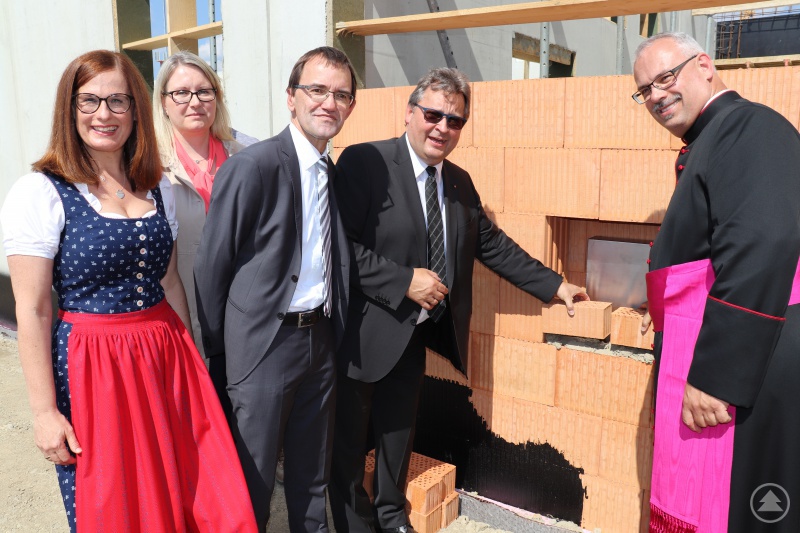 Waldkirchen/Passau (can). Der Grundstein ist gelegt. Die Zukunft von St. Gisela damit fest besiegelt. Das neue Caritas-Seniorenheim in Waldkirchen soll im Herbst 2019 fertig sein. Am Freitag, 15. Juni, hat Generalvikar Dr. Klaus Metzl auf der Baustelle am Karoli den Segen erteilt.