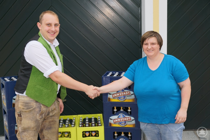 Bei der Übergabe gratulierte Andreas Bildl von WAIDLER.COM der Gewinnerin herzlich zum Gewinn und wünschte viel Spaß und eine tolle Party mit dem Innstadt-Partypaket 2018.