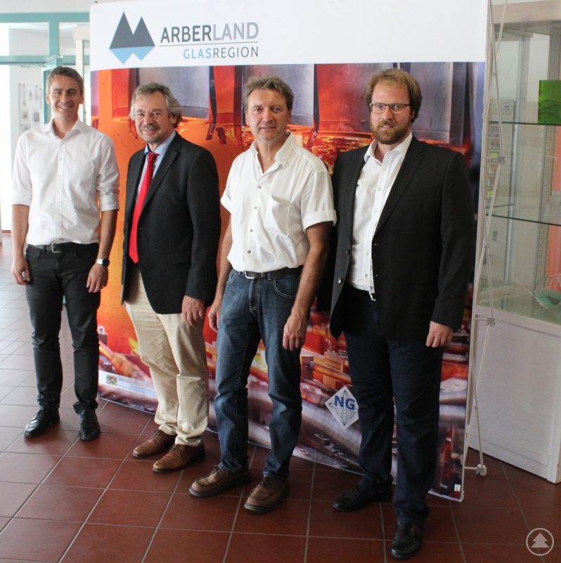 Christian Schläger von der Hans Lindner Stiftung, Hans Wudy, Leiter der Glasfachschule Zwiesel, Glaskünstler Erwin Schmierer, Regionalmanager Stephan Lang vom Netzwerk Glas