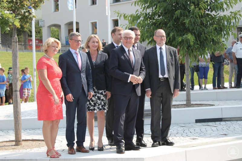 Die Bundestagsabgeordneten Rita Hagl-Kehl und Thomas Erndl sowie Kultusminister Bernd Sibler und Landrat Sebastian Gruber begleiteten Bundespräsident Steinmeier. Auch Hochschulpräsident Peter Sperber und Grafenaus Bürgermeister Max Niedermeier freuten sich sehr über den hohen Besuch. Diane Ahrens, Leiterin des Technologiecampus, gab ihren Gästen einen kurzen Überblick über die Arbeit der Forscher in Grafenau: „Unser Erfolg liegt in der interdisziplinären Zusammenarbeit. Erfahrene Logistiker verstehen das Kundenproblem, Statistiker analysieren die vorliegenden Daten, Mathematiker entwickeln Lösungsalgorithmen und Informatiker setzen diese gemeinsam mit Mediendesignern in bedienfreundliche Software um.“ Damit kommen am Technologiecampus Grafenau alle Lösungen aus einer Hand. „In einer Region fern von den bekannten Ballungszentren, wirken wir deshalb umso mehr als Impulsgeber und können viel bewegen“, erläutert Ahrens. 2015 belebte der Neubau für die Außenstelle der THD sichtlich den Stadtkern von Grafenau: aus einer Problemregion mit Leerständen begann sich ein modernes offenes Stadtzentrum zu entwickeln. Campusleiterin Diane Ahrens legt außerdem ein besonderes Augenmerk auf die Verwurzelung in der Region sowie die Kooperation mit kleinen und mittleren Unternehmen im Bayerischen Wald, erwähnte aber auch größere Partner wie beispielsweise Rhode & Schwarz und BMW. Staatsminister Sibler äußerte sich lobend über grenzüberschreitende Projekte mit Tschechien.