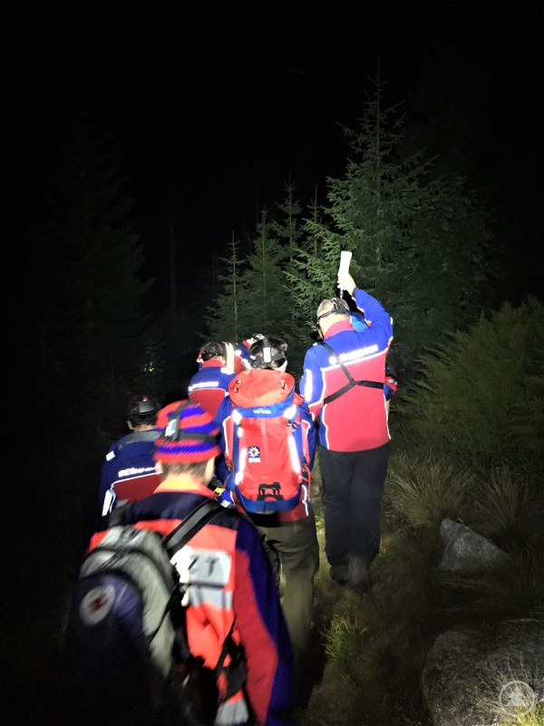 Nach knapp einer Stunde Suche erreichten im Dunkeln die ersten Bergretter die Patientin, allerdings nicht am Hochkamm sondern am Adalbert Stifter-Steig. Die Patientin hatte in der Finsternis die Stirnlampen der Bergretter gesehen und konnte über Rufkontakt auf sich aufmerksam machen.