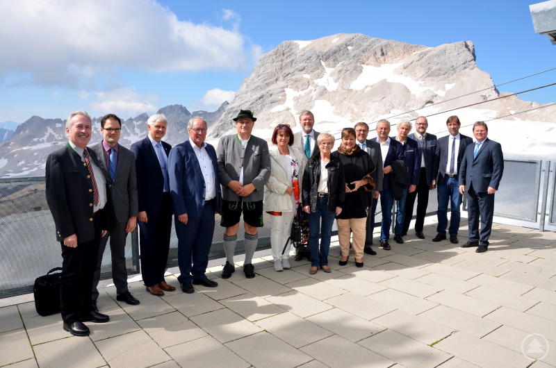 Zugspitze/Regen. Der Ausschuss für Landesentwicklung und Umwelt des bayerischen Landkreistages traf sich, auf Einladung des örtlichen Landrats Anton Speer, am Donnerstag, 19. Juli, auf der Zugspitze. Auf der Tagesordnung standen Themen wie die „Umsetzung der Kompensationsverordnung“ und der Mindestwasserleitfaden. Mit dabei waren auch Regens Landrätin Rita Röhrl und der bayerische Umweltminister Dr. Marcel Huber.