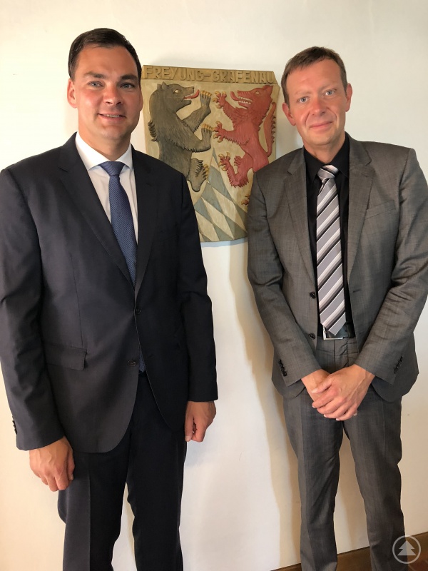 Landrat Sebastian Gruber nach der Vertragsunterzeichnung mit Herrn Marcus Plaschke, dem künftigen Geschäftsführer der Kliniken Am Goldenen Steig.Landrat Sebastian Gruber nach der Vertragsunterzeichnung mit Herrn Marcus Plaschke, dem künftigen Geschäftsführer der Kliniken Am Goldenen Steig.