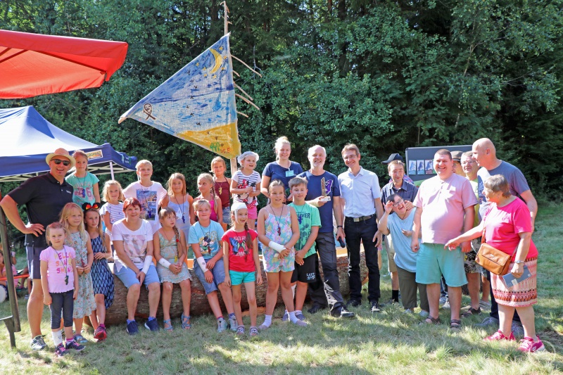 In sieben Stationen mussten die kleinen Gäste um die Welt reisen und staunten, welche exotischen Vögel alle zu den Spechtverwandten gehören. Wie der Honiganzeiger aus Amerika, der Faulvogel aus den Tropen und nicht zu vergessen der Bunte Tukan aus Südamerika. Der Grünbindenspecht sucht hüpfend die Larven im Boden und so mussten die Kinder sackhüpfend versteckte Tonlarven finden. Bei der Weißkopfspecht-Station bekamen die Kinder vom BRK einen weißen Kopfverband angelegt, bei der Blutspecht-Station galt es, Sonnenblumensamen auf Zeit zu knacken. Für jede gemeisterte Aufgabe gab es einen Stempel und für die volle Stempelkarte beim Zelt des Vereins Waldzeit eine Überraschung. Startpunkt der Weltreise war ein Segelschiff aus Holz, für das die Teilnehmer am Freiwilligen Ökologischen Jahr (FÖJ) des Nationalparks zusammen mit den Bewohnern des Caritas-Wohnheimes in Spiegelau das Segel gestaltet haben. In diesem Zusammenhang bedankte sich Lukas Laux noch einmal besonders bei den FÖJlern. „Unsere Freiwilligen prägen das Spechtfest immer ganz besonders mit ihren Ideen.“