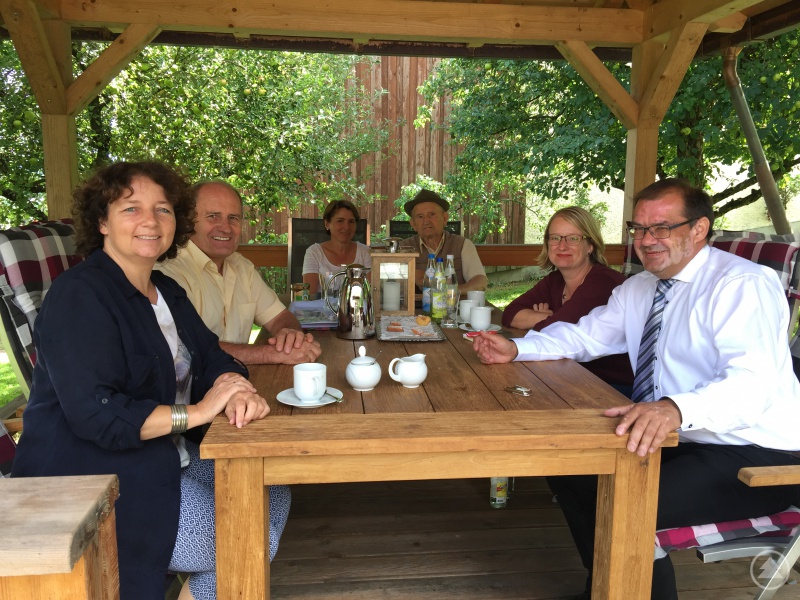 Palmberg/ Spiegelau. Der brandenburgische Minister für Ländliche Entwicklung, Umwelt und Landwirtschaft traf sich auf Einladung der SPD Landtagskandidatin Bettina Blöhm und der Landtagsabgeordneten Ruth Müller, die selbst Mitglied im Agrarausschuss des Bayerischen Landtags ist, zum agrarpolitischen Fachgespräch mit dem hiesigen BBV-Kreisobmann Hans Döringer auf dessen Hof in Palmberg.