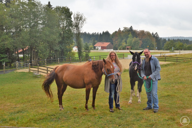 Andrea Klotsch mit Mann Kilyan und zwei ihrer vier HerzensPferde