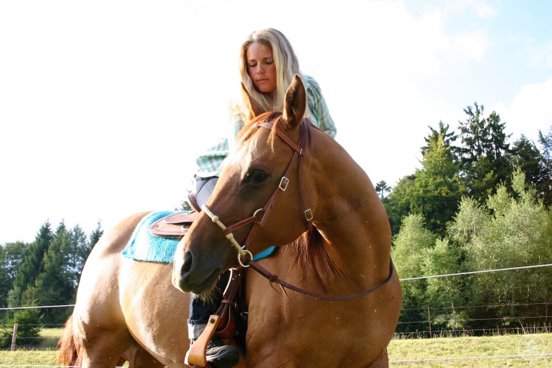 Ach, ich fühlte mich schon als Kind zu Pferden hingezogen. Meine Eltern unterstützen dies damals jedoch nicht - zu groß, zu teuer, zu gefährlich. Als ich mit 14 Jahren mein erstes eigenes Geld verdiente, reinvestierte ich es sofort in Reitstunden. Und nach meiner Ausbildung zur Erzieherin habe ich mir mein erstes Pferd gekauft. Besser gesagt war es damals noch ein Fohlen, meine Lena. Heute ist sie 13 Jahre alt. Ein American Quarterhorse, ein Westernpferd.