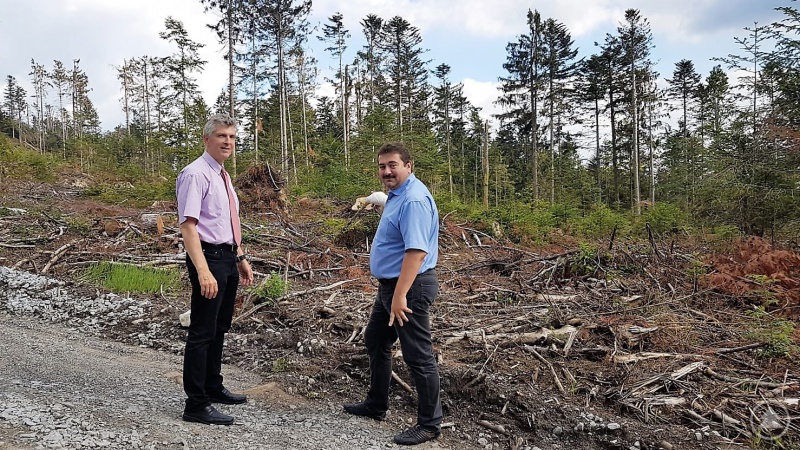 Waldkirchen. In und um die Stadt Waldkirchen sind laut dem zweiten Bürgermeister Max Ertl rund 80 Kilometer Wanderwege ausgewiesen. „Fast das komplette Wanderwegenetz ist aufgrund des Holzabtransportes nach Sturm Kolle beschädigt worden“, so Ertl bei einem Besuch von MdL Prof. Dr. Gerhard Waschler. Einige der Wege sind derzeit immer noch ge-sperrt. „Jetzt wo im Herbst verstärkt gewandert wird, ist das natürlich sehr schade“, so Ertl weiter. Neben den Wanderwegen sind außerdem auch viele Forstwege und Straßen sowie Brücken in Mitleidenschaft gezogen worden – „kein Wunder, das Holz muss mit schwerem Gerät abtransportiert werden“, ist dem zweiten Bürgermeister natürlich klar, daher auch sein Dank für die schnelle und unbürokratische Hilfe durch den Freistaat an Privatpersonen mit Wäldern. „Als Kommune sind wir bei der Sanierung, auch der durch die Beseitigung von Sturmschäden in Mitleidenschaft gezogenen Gemeindestraßen, für jede Hilfe dankbar“, dankt Ertl für die Initiative des Abgeordneten zur unbürokratischen finanziellen Unterstützung auf dem Weg zur Wiederherstellung beschädigter Straßenflächen.