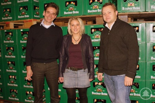 Von links: Herr Wiedemann (Bucher Bräu), Gewinnerin Sandra Amann, Stefan Behringer (BWmedien GmbH)