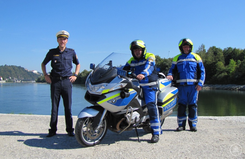Die Kradstaffel der VPI besteht derzeit aus sieben Fahrern und ist u.a. bei Verkehrslenkungs- und –sicherungseinsätzen z.B. bei Sportveranstaltungen, Versammlungen und Lotsenfahrten, aber auch im Rahmen der Verkehrsüberwachung auf Autobahnen und Landstraßen insbesondere in den Landkreisen Passau, Freyung-Grafenau und Rottal-Inn eingesetzt. Die Mannschaft wurde im Lauf dieses Sommers mit der neuen hochmodernen Sonderdienstbekleidung ausgestattet. Dabei handelt es sich um zweiteilige Textilanzügen in blau mit leuchtend gelben Elementen, Reflektoren und modernen Protektoren. Dadurch verbessert sich sowohl die Sichtbarkeit, als auch der Aufprallschutz wesentlich. Durch hochwertige Textilfasern wurden die Klimaeigenschaften und die Haltbarkeit der Anzüge optimiert. Sie erfüllen ihre Funktion bei hohen Temperaturen im Sommer ebenso wie an kühlen Tagen im Herbst und Winter vor allem durch herausnehmbare Membranen und Wärmefutter. Dazu gibt es einen Regenschutzanzug. Vervollständigt wird die Ausrüstung durch einen hochmodernen Helm in Signalfarbe, mit integrierter Funkanlage und eingebautem Sonnenschutz unter dem Visier.