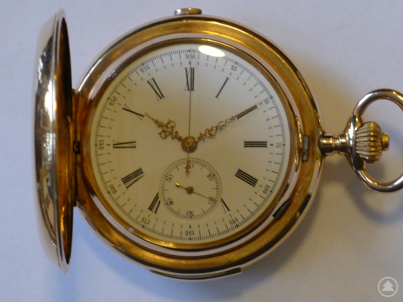 Schwere Gold Savonet Taschenuhr 1896 mit Chronographen und Minutenschlagwerksfunktion
