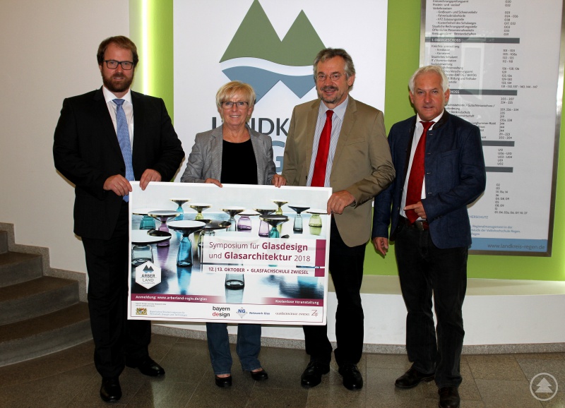 Freuen sich auf das neue Symposium für Glasdesign und Glasarchitektur mit dem Partner bayern design (v.l.): Stephan Lang, Koordinator des Netzwerks Glas, Landrätin Rita Röhrl, Hans Wudy, Leiter der Glasfachschule, Herbert Unnasch, Geschäftsführer der ARBERLAND REGio GmbH.