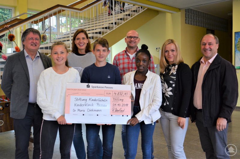 Insgesamt sind bei dem Spendenlauf so 4832,15 Euro zusammengekommen. „Wir wollten mit den Geldern definitiv eine gute Sache in der Region unterstützen. Und da wir von der vielfältigen Arbeit der Kinderklinik überzeugt sind, war die Wahl schnell getroffen“, erklärt Diplom-Pädagogin Pamela Penzenstadler, die den Lauf vorrangig organisiert hatte. „Diese Spende ist der Verdienst von euch Schülern“, lobt auch Schulleiter Reinhard Bernhart und Bürgermeister Helmut Willmerdinger ergänzt: „Das ist sensationell. Ich durfte den Lauf vom Rathausfenster aus begleiten und anfeuern.“