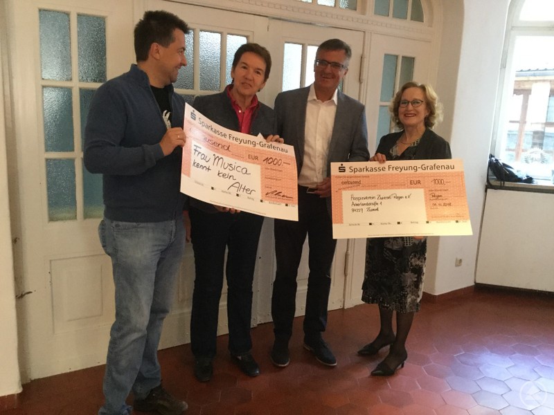 Regen im Bayerischen Wald. Spenden statt Postwurfwendung: Der Landtagsabgeordnete Alexander Muthmann hat sein Versprechen eingelöst und am Montag mit der Übergabe der Spendenschecks begonnen. Die ersten zwei von insgesamt acht Tausendern bekamen bei einem Termin im Niederbayerischen Landwirtschaftsmuseum der Hospizverein Zwiesel-Regen und die Katholische Erwachsenenbildung (KEB) im Landkreis Regen für das Projekt „Frau Musica kennt kein Alter“, das gerade gestartet wurde.
