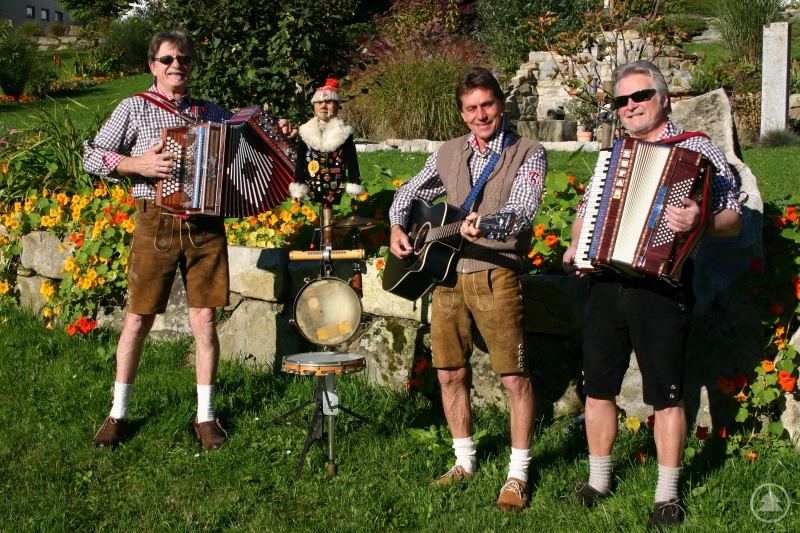 “Die drei lustigen Vier”, Klaus Knollmüller aus Hauzenberg (Akkordeon), Walter Sonnleitner aus Waldkirchen (Steirische und Teufelstrommel) und Franz Bayer aus Waldkirchen (Gitarre und Gesang) haben sich vor zwei Jahren zusammengefunden. Sie spielen traditionell bayerisch-böhmisch, aber auch Lieder aus Österreich.
