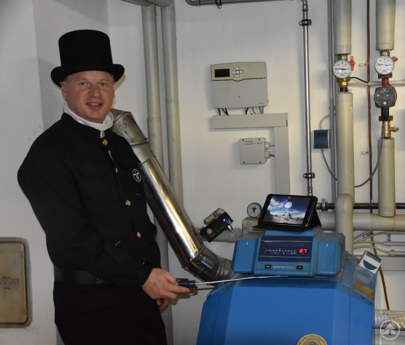 Jaja, das ist heute auch noch so. Wir führen ja regelmäßig Kehrarbeiten in den Haushalten durch. Wir steigen nach wie vor aufs Dach, lassen die Kugel samt Edelstahlbürste hinunter in den Kamin und befreien ihn damit vom Ruß. Kamine von Öl- und Gasöfen können wir mittlerweile auch von unten mit einer Haspel reinigen. An den Heizungsanlagen führen wir sicherheitstechnische Abgaswegeüberprüfungen durch, wir machen Immissionsschutzmessungen und beraten in feuertechnischen Fragen.