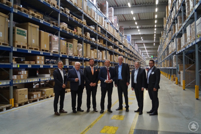 Martin Kettl (Senior Manager Inbound Supply Chain), Manfred Krä (Bürgermeister Aiterhofen), Martin Köck (Wirtschaftsreferent Landkreis Straubing-Bogen), Landrat Josef Laumer, Rupert Hierl (Executive Director Operations), Mario Kunz (Senior Manager Human Resources), Martin Peintinger (Senior Manager Outbound Supply Chain)