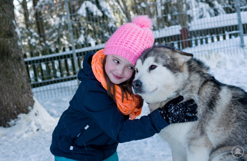 Huskys sind ganz stark ausgeprägte Rudelhunde. Man hat mit jungen Hunden relativ wenig Aufwand, sie werden sozusagen von den älteren Tieren erzogen. Das soziale Verhalten wird im Rudel vermittelt. In den ersten 12 Monaten geht es vor allem um Unterwerfung, ums Spielen, ums Futter. Ab dem 3. Monat werden die Jungtiere durch den Rudelchef in die Gemeinschaft integriert.
