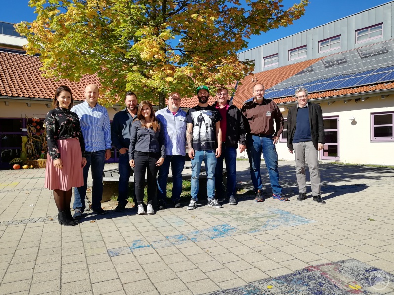 v.l.: Maria Schneider vom Regionalmanagement (ARBERLAND REGio), Lehrkraft Tobias Kilger, Florian Hönig und Ann-Kathrin Leue (Fidel und Schub), Jürgen Wach und Karl-Heinz Wanninger (ARBERLANDkliniken), Markus Schmid (Autohaus Aichinger), Rektor Artur Baumann.
