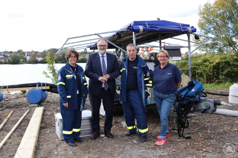 Oberbürgermeister Jürgen Dupper (2. von links) mit den THW-Verantwortlichen Dr. Susanne Wacht (Leiterin des Referats Ausland in der Zentral in Bonn), Christian Jungnickel (Ortsbeauftragter des Ortsverbands Passau) und Marieluise Sandner-Wilke (Leiterin der Regionalstelle Straubing.