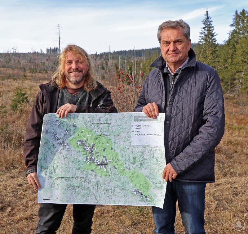 Diese gute Nachricht überbrachten Dr. Franz Leibl und Pavel Hubený, die Leiter der beiden Nationalparks Bayerischer Wald und Šumava, bei einer gemeinsamen Pressekonferenz am Grenzübergang Buchwald bei Finsterau. Aufschluss über die Größe der Population geben die Ergebnisse des Auerhuhn-Monitorings, das im Rahmen des Interreg-Projektes „Grenzüberschreitende Kartierung der Waldökosysteme – Weg zum gemeinsamen Management in den Nationalparken Šumava und Bayerischer Wald“ durchgeführt wurde.