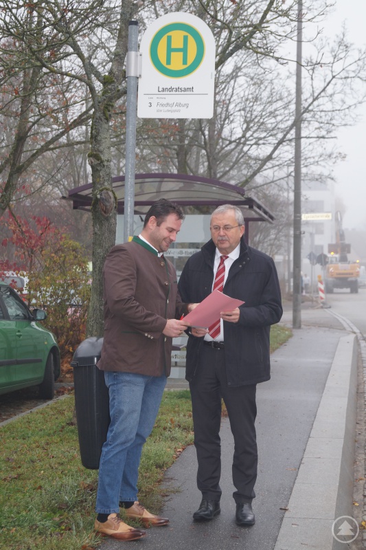Wirtschaftsrefent Martin Köck (links) und Landrat Josef Laumer freuen sich auf das Pilotprojekt Azubi-Bus.