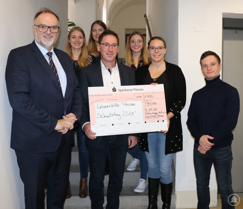 Die beiden Hochschulgruppen „Aktion Augen Auf e. V.“ und „Leo-Club Dreiflüssestadt Passau“ organisierten im Juni bereits zum fünften Mal den „Passauer Schwitztag“. Dieses Jahr kommt der Gesamterlös von rund 1.800 Euro der Lebenshilfe Passau zugute. Die Helfer überreichten im Beisein des Schirmherren Oberbürgermeister Jürgen Dupper den Spendenscheck an den Geschäftsführer der Lebenshilfe Passau Thomas Hofbrückl.