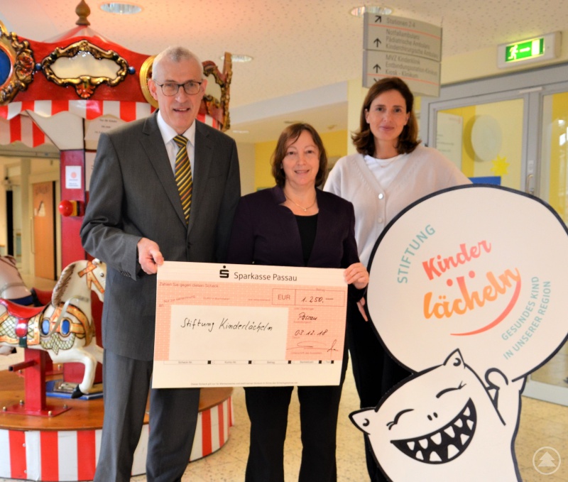Bei der justizinternen Aktion wurde eine Tombola mit zahlreichen Sachpreisen sowie Kuchen- und Kaffeeverkauf organisiert. Den Erlös wollte das Mitarbeiterteam nun spenden – „die Wahl ist schnell auf die Stiftung Kinderlächeln gefallen, denn hier sind die Gelder sicher gut angelegt“, ist der Personalratsvorsitzende August Spieleder überzeugt. Insgesamt sind beim Kindermitbringtag 1250 Euro zusammengekommen, die nun bei einer Spendenübergabe in der Kinderklinik Dritter Orden Passau offiziell übergeben worden sind. „Wir hatten einen wunderbaren Tag, mit Bastelstunde, außerdem haben wir die Sicherheitskontrolle besucht und den Verlauf einer Gerichtsverhandlung kindgerecht erklärt – es war alles andere als langweilig“, so Spieleder weiter. Dankend nahm die Stiftungsvorstandsvorsitzende Dr. Maria Diekmann den Spendenscheck entgegen. „Eine beachtliche Summe, mit der wir viel anfangen können. So unterstützen wir nicht nur diverse Projekte der Kinderklinik, wie die Musiktherapie oder die Familiennothilfe, sondern besorgen natürlich auch Spielsachen für die Stationen und investieren in die Fort- und Weiterbildung der Mitarbeiter“, so Diekmann.