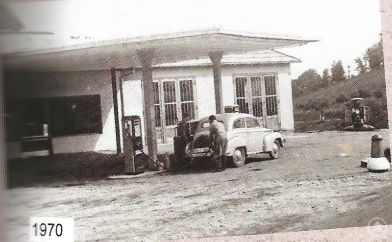 Wo heute der EDEKA-Markt steht, war einst die Tankstelle und Autowerkstatt von Fritz Peter. Er hatte eine BMW- und Ford-Generalvertretung. Die gesamte Anlage wurde 1980 abgerissen.