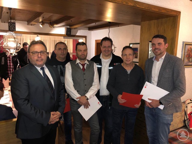 Karl Matschiner, der 1. stellv. BRK-Kreisvorsitzende hatte zusammen mit Günther Karl, dem stellv. Kreisgeschäftsführer und Leiter Rettungsdienst die Ehre, vier Mitarbeiter des BRK-Kreisverbandes Freyung-Grafenau für Ihre langjährige Betriebszugehörigkeit auszuzeichnen. Die Ehrung fand im Rahmen der Jahresabschlussfeier, die alljährlich als Dank an die hauptamtlichen Mitarbeiter organisiert wird, statt. Zwei Mitarbeitern konnte die Ehrenurkunde des Bayerischen Roten Kreuzes, ausgestellt vom BRK-Präsidenten Theo Zellner und Landesgeschäftsgeschäftsführer Leonhard Stärk, für 25-jährige Betriebszugehörigkeit überreicht werden. Zwei weitere Kollegen erhielten die Ehrung des BRK-Kreisverbandes für 10- bzw. 20-jährige Mitarbeit.