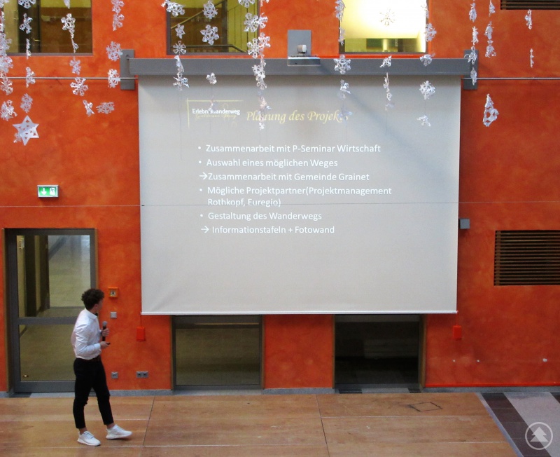 Projektsprecher Patrick Duschl verwies auch auf die sehr gut gelungene Zusammenarbeit mit dem P-Seminar Wirtschaft und Recht (Leitung: Sebastian Ranzinger). Pia Stadlmeyer erläuterte hierzu, dass ein paar der Teilnehmer eine Website programmiert hatten, die die Inhalte der Tafeln mit dort angebrachten QR-Codes für jeden abrufbar bereithält. Sogar eine Übersetzung ins Tschechische findet sich auf der Seite. Außerdem kann man lustige Geschichten vom „Säumer Sepp“ abrufen und während der Wanderung oder zuhause am PC anhören. Neugierig geworden?