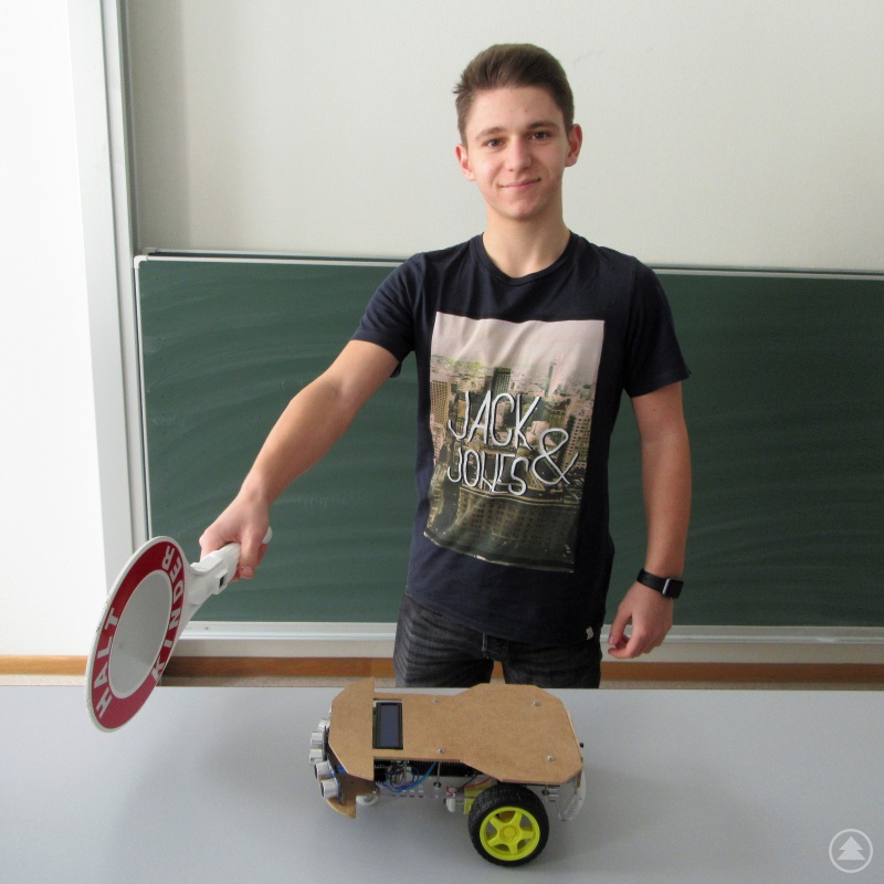 Alessio Argentieri beispielsweise hat ein Fahrzeug gebaut, das Hindernisse erkennen und diesen selbstständig ausweichen kann. Inspirieren lassen hat er sich dabei von heutzutage in Autos verbauten Einparkhilfen und dem digitalen Testfeld auf der Autobahn München-Ingolstadt. Sein Gefährt hat Alessio mit Sensoren ausgestattet, die einen Ultraschallton aussenden. Eventuelle Hindernisse reflektieren diesen Ton, am Fahrzeug angebrachte Lautsprecher nehmen diese Reflexion auf, ein im Auto verbauter Mini-Computer errechnet mit der Hilfe des Tons den Abstand und sendet ein entsprechendes Signal an die Vorderreifen. Ist eine Linkskurve nötig, um dem Hindernis auszuweichen, blockiert das linke Vorderrad, so dass nur das rechte Vorderrad sich noch bewegt.