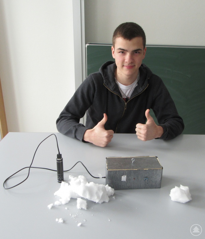 Wetterprognosen will zukünftig Simon Lankl mit der von ihm gebauten Online-Wetterstation erstellen. Drei Sensoren messen Luftfeuchtigkeit, Temperatur, Luftdruck, Höhe und Helligkeit. Die Wetterstation verbindet sich automatisch mit dem lokalen Netzwerk und jeder, der beispielsweise mit seinem Handy in diesem Netzwerk eingeloggt ist, kann über eine bestimmte Webseite die Daten abrufen.