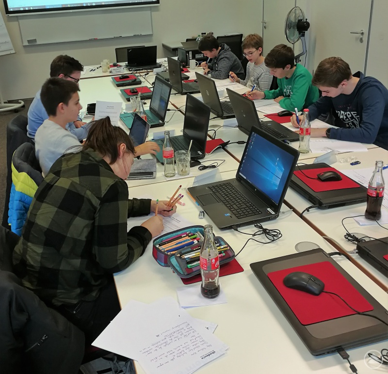 Als wir mit Getränken versorgt waren, begaben wir uns in den Kursraum, wo schon viele Laptops und Mappen auf uns warteten. Nach vielen interessanten Infos, aber auch etwas trockenem, theoretischen Wissen, wie man gute Bilder auswählt oder aber auch wie man gute und ansprechende Überschriften findet, war auch schon die Mittagspause da.
