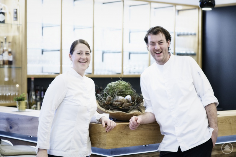 Vielen regionalen Zulieferern wie der Metzgerei Heindl, dem Poltinger Hof für Wild und Lamm oder auch Obst Lallinger vertrauen Elisabeth Anetseder und Manuel Hagel. Und selbstverständlich verarbeiten sie auch das Obst aus dem eigenen Garten, etwa für ein Walnuss-Parfait mit Rotweinbirne. Sie wecken Obst ein, erzeugen Hollersaft- und -sirup für beispielsweise einen spritzigen Aperitif und verwenden die selbst hergestellten Marmeladen zur Verfeinerung ihrer Saucen.