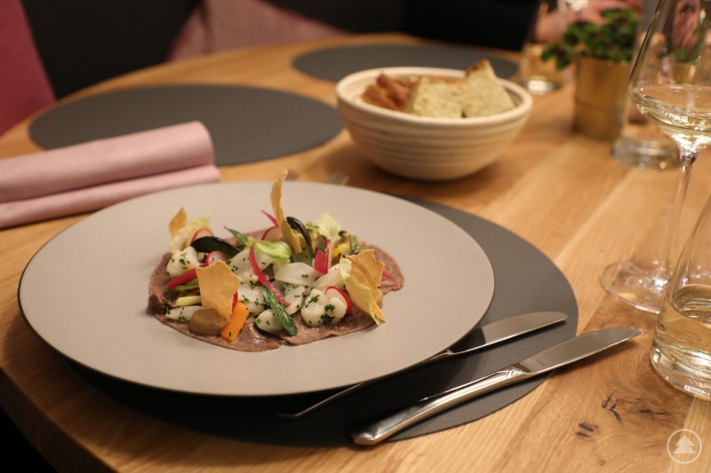 Anfang 2017 zog es Elisabeth Anetseder (34) dann mit ihrem Lebensgefährten Manuel Hagel (31), ebenfalls Koch, zurück nach Haag. Das Weiterführen, die Übernahme des elterlichen Wirtshauses, in dem sie mit der täglichen Geschäftigkeit und der Dorfgemeinschaft aufwuchs, das war seit Kindesbeinen ihr Wunsch. Bereits im November eröffneten die neuen Wirtsleute ihr Schmuckstück. Die alte Wirtsstube ließen sie, wie sie war und von Vereinen zum Stammtisch sowie von Dorfbewohnern zum Sonntagsfrühschoppen nach der Kirche seit Jahrzehnten geschätzt wird. Völlig neu entstanden sind die geräumige Küche, das Kühlhaus und vor allem der Saal. Hier orientierte man sich am ländlichen Architekturstil, vereinte den Sichtdachstuhl mit heimischen Rohstoffen aus Granit und Eiche, integrierte einen Kamin und schuf so eine gemütliche Wohnzimmeratmosphäre. So entstand im Gesamtkomplex des ehemaligen Bauernhofes eine spannende Kombination aus à la carte-Restaurant, aus Saal für 180 Personen, der durch eine Trennwand je nach Anlass für Festivitäten und Kulturveranstaltungen wie Kabarett oder Konzerte angepasst werden kann, sowie der klassischen Wirtsstube im geschichtsträchtigen Haupthaus.