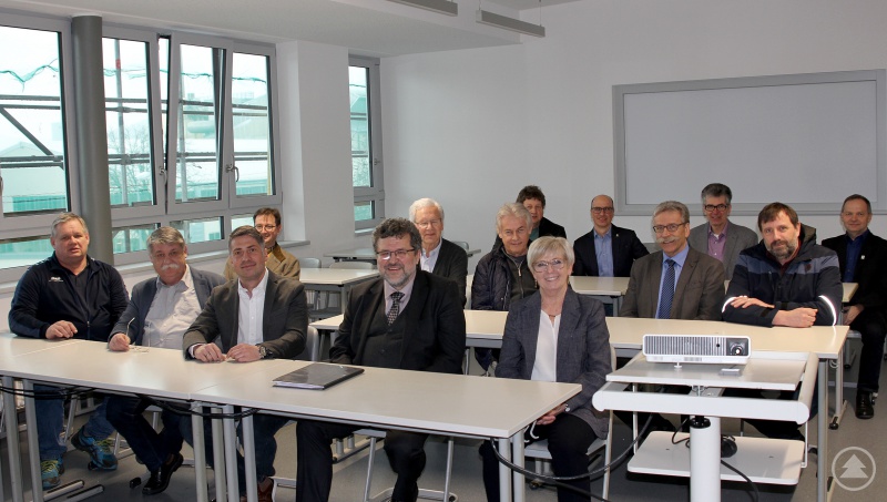Die Gäste durften bei der Einweihung selbst die Schulbank drücken. Unser Bild zeigt die Teilnehmer mit (vorne v.li.) Hausmeister Hans Werner, Gebäudemanager Siegfried Gigl, Thomas Frisch (Landkreis Regen), stellvertretender Schulleiter Klaus Habermeier und Landrätin Rita Röhrl. Zweite Reihe (v.li.) Personalratsvertreter Stefan Urlbauer, Elektroplaner Rudolf Mages, Architekt Georg Oswald, Kreiskämmerer Franz Baierl und Elternbeiratsvorsitzender Xaver Ebner. In der dritten Reihe sitzen (v.li.) Joahnn Oswald (Architekturschmiede Oswald), Benedikt König (Tragwerksplanung), Michael Kopp (Heizungs-, Lüftungs- und Sanitärtechnik) und Günther Weinberger (Büroleiter der Landrätin).