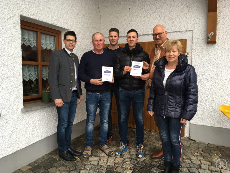 v. l.: Bürgermeister Martin Pichler, Anton und Tobias Höcker, Simon Pleintinger,  Manfred Eibl und Helga Höcker, bei der Überreichung der Markenschilderv. l.: Bürgermeister Martin Pichler, Anton und Tobias Höcker, Simon Pleintinger, Manfred Eibl und Helga Höcker, bei der Überreichung der Markenschilder
