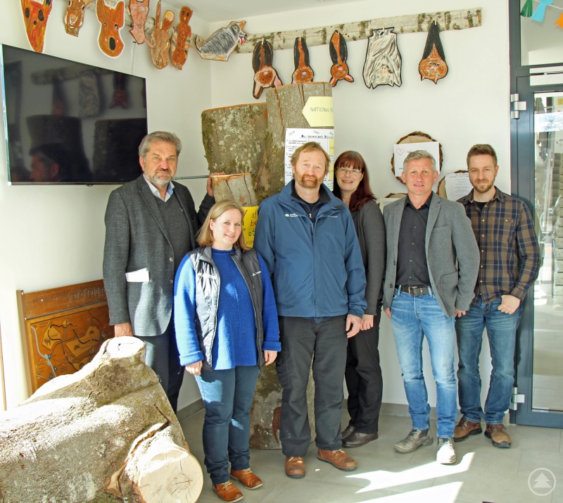 Freuten sich über die tolle Umsetzung der Nationalpark-Ecke: Nationalparkleiter Dr. Franz Leibl (von links), Nicole Graf-Kilger vom Hans-Eisenmann-Haus, Stefan Vießmann vom Servicezentrum Lusen, Schulleiterin Bettina Schopf, Bürgermeister Alfons Schinabeck und Projektkoordinator Thomas Michler.