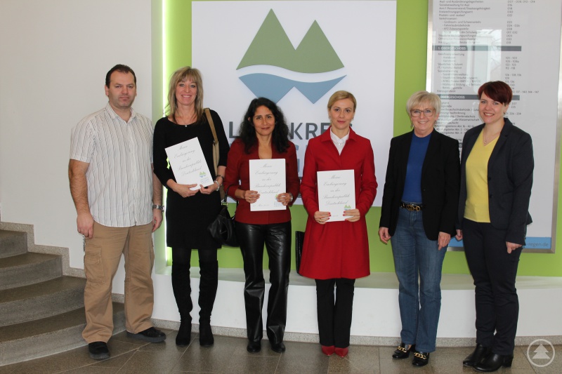 Allen drei neu eingebürgerten Frauen mussten vor der Einbürgerung entsprechende Sprachkenntnisse nachweisen und einen Einbürgerungstest machen. Landrätin Röhrl gratulierte zur Einbürgerung und wünschte für die Zukunft alles Gute.