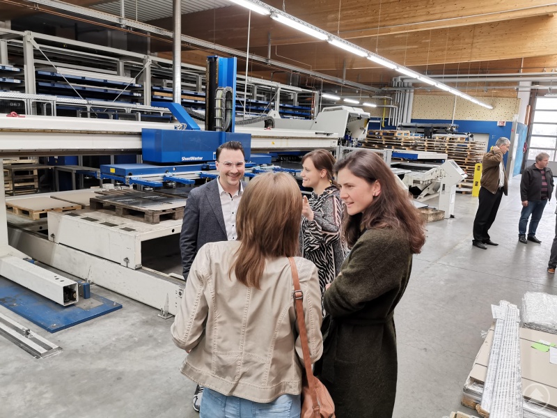 Nachdem die Geschäftsführer Rudolf und Fabian Schremmer die Besucher begrüßt und kurz in die Thematik eingeführt hatten, folgte ein ausführlicher Rundgang durch die Werkshallen, bei dem die Wirtschaftsjunioren genaueres über die verschiedenen Fertigungs- und Bearbeitungstechniken erfuhren. Von mehreren Stanz- und Laseranlagen über eine Abkantstraße bis hin zur Pulverbeschichtung wurde alles unter die Lupe genommen.