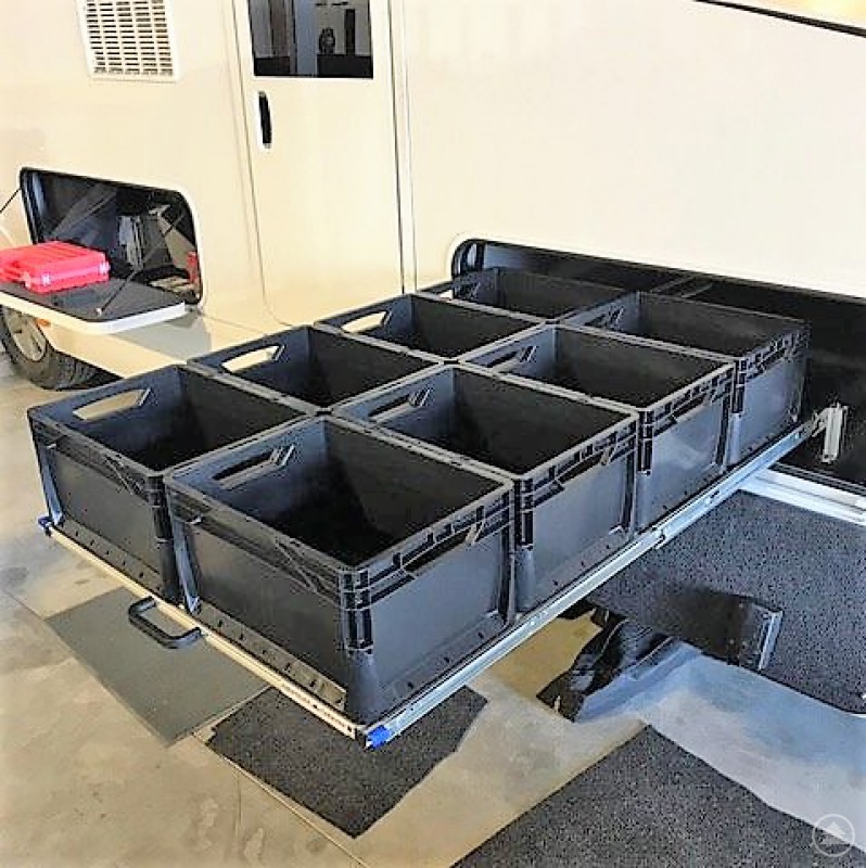 Max und ich hatten schon einige Jahre, so etwa seit 2009, unsere Freude am Camping gefunden. Unsere Frauen sind Schwestern, da ging es auch darum, mal Abstand zur Arbeit zu bekommen. Und da wir Tüftler sind, sind uns halt immer wieder Dinge aufgefallen, die uns am Innenausbau der Wohnmobile störten, vor allem im Bereich der Heckgarage, wo viel Gepäck transportiert wird.