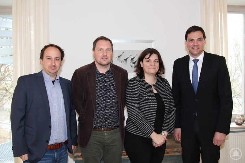 Über die verschiedenen Facetten der Wirtschaft und der Regionalentwicklung im Landkreis sprachen Landrat Sebastian Gruber (rechts) und der Geschäftsführer der LAG Landkreis Freyung-Grafenau, Tobias Niedermeier (links), mit der neuen Leiterin des Sachgebietes „Wirtschaftsförderung und Beschäftigung“ an der Regierung von Niederbayern, Manuela Königbauer und dem auch weiterhin für den Landkreis Freyung-Grafenau zuständigen Wirtschaftsförderer an der Regierung von Niederbayern, Alexander Kropp.
