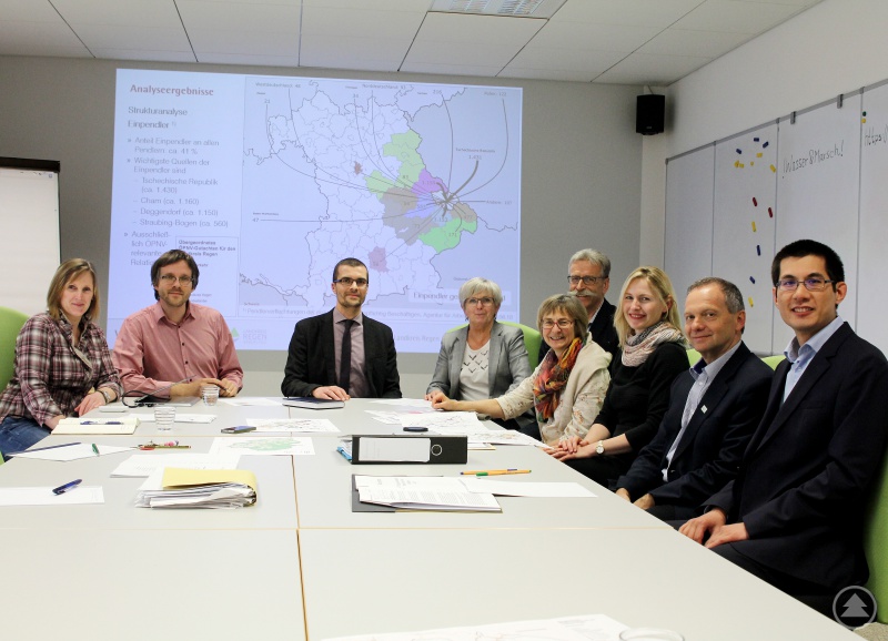 Die Teilnehmer der Vorstellungsrunde des Zwischenergebnisses (v.li.) Liesa Stadler (Landkreis Regen), Christoph Bochmann, Michael Schütze (beide VCDB), Landrätin Rita Röhrl, Franz Baierl, Christina Wibmer, Dr. Stefanie Duarte Fernandes, Günther Weinberger (alle Landkreis Regen) und Tobias Schmalzl (BEG).