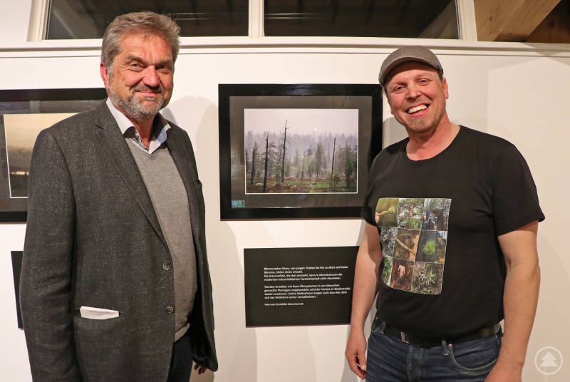 Nationalparkchef Franz Leibl (links) mit Fotograf Sebastian Kirppu bei der Eröffnung der Ausstellung "Von Wäldern und Menschen".