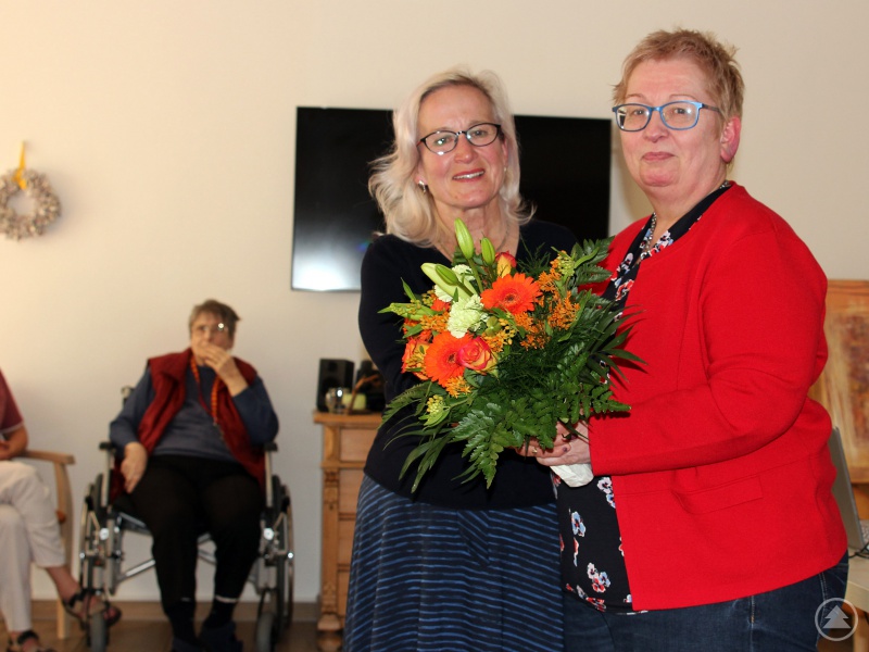 „Leben ist immer mit Loslassen verbunden“, sagt Heidemarie Horenburg (li.) und bringt so den Weg eines jeden Menschen auf den Punkt. Iris Paternoster, die Leiterin des Seniorenheimes, bedankte sich bei ihr für ihr Referat.